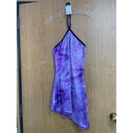 Tie-Dye Spandex Tunic. Angular, halter, In purple.