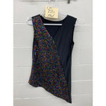 Micro sequin with dual panel design. Pullover Design, Sleeveless Tunic with black lycra panel and lycra solid back. 2 color micro sequin.