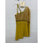 Asymmetrical one shoulder sleeveTunic. With 2 straps on right side shoulder. Mesh bottom and Micro sequin and left arm sleeve.