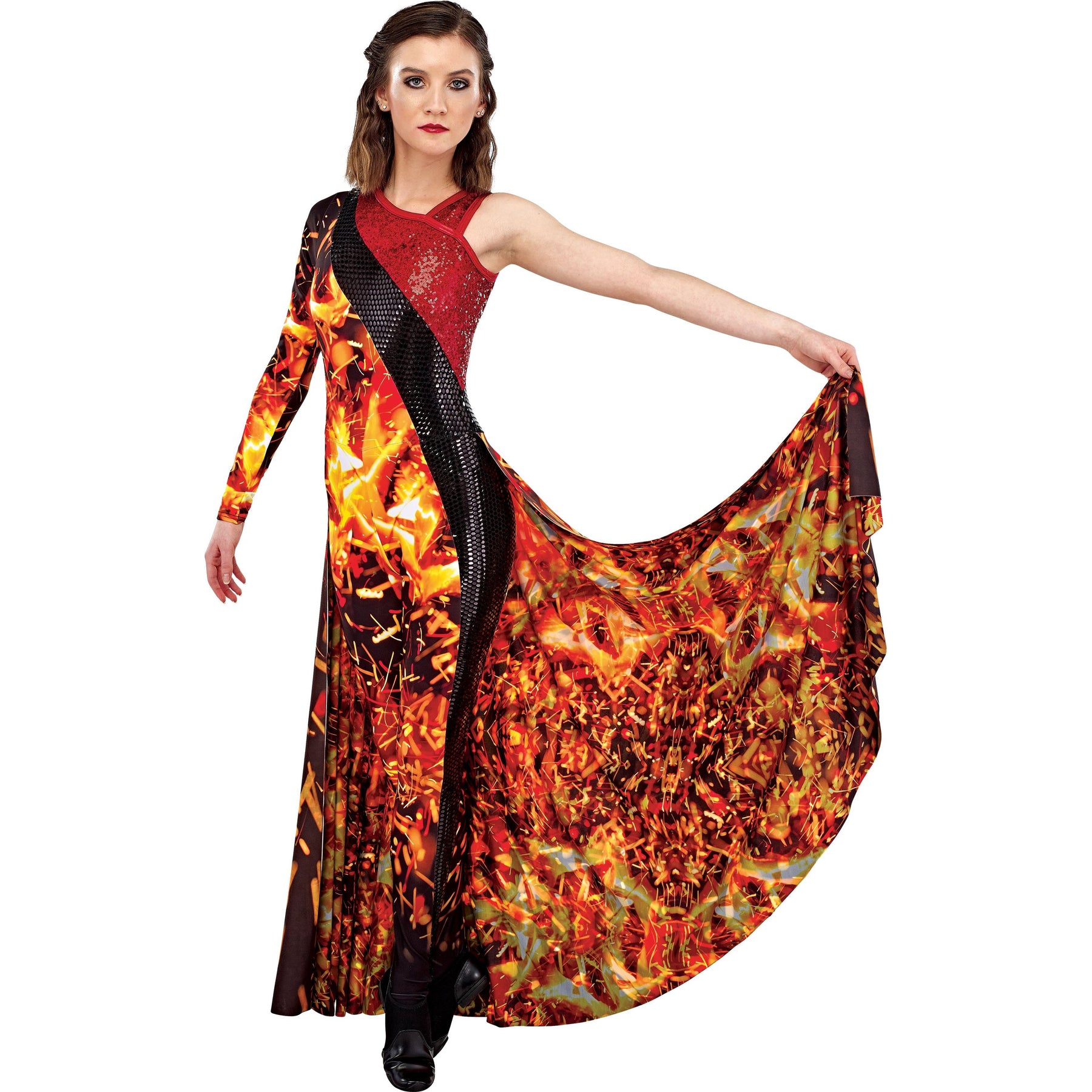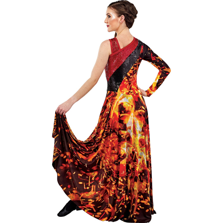 • Asymmetric Hybrid Legging Unitard with Hybrid Left Leg, Long Right Sleeve, and Double Sided Long Back Skirt