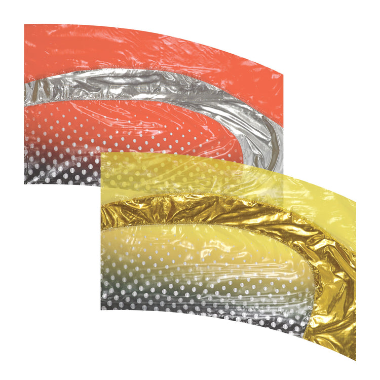 Crystal Clear Lame flags with digitally overprinted design and Hybrid Lame accent.