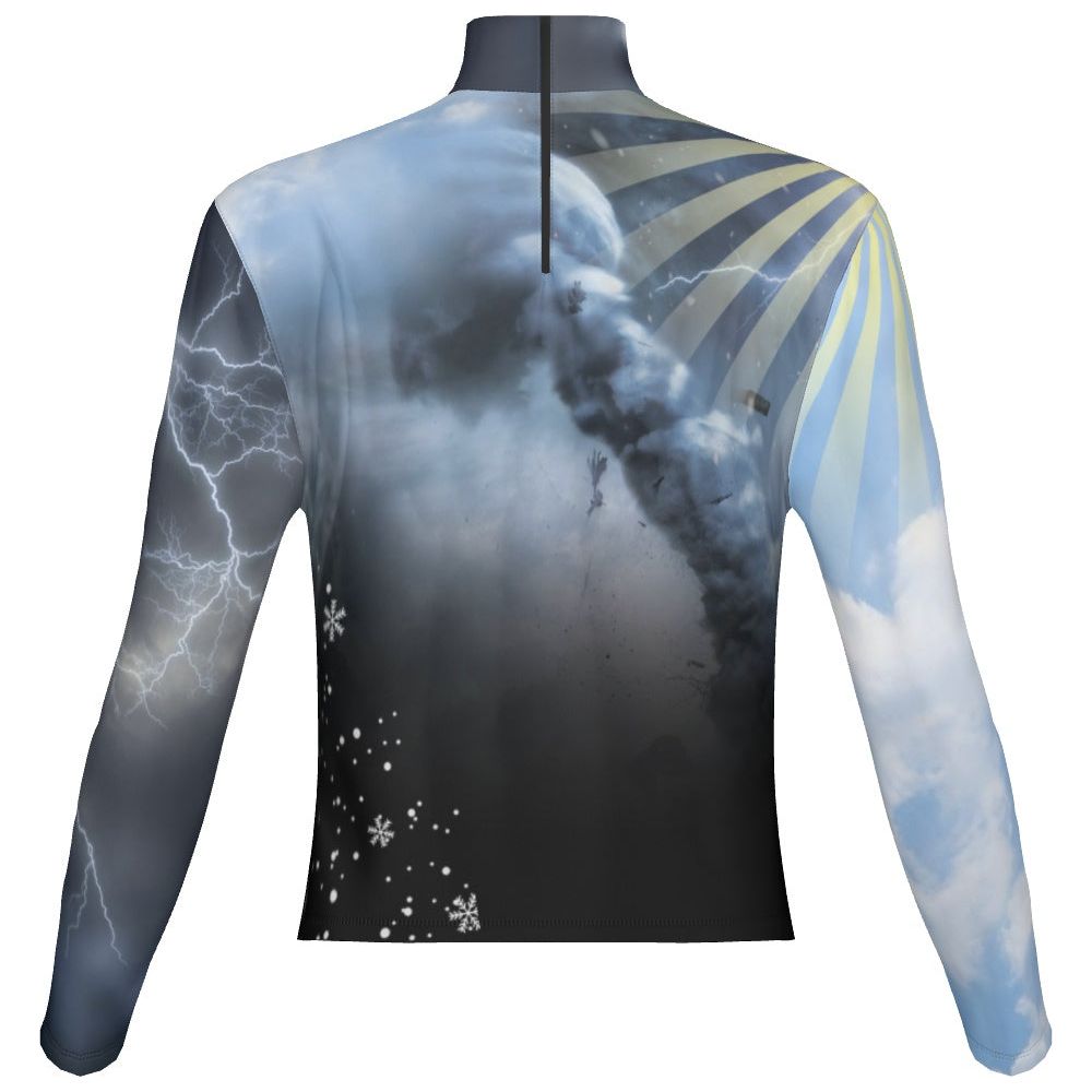 • Cuenta con cremallera trasera de 8” en el cuello y orificios para los pulgares en las muñecas.