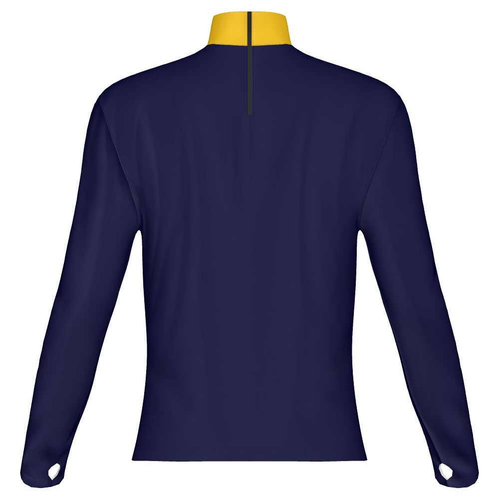• Cuenta con cremallera trasera de 8” en el cuello y orificios para los pulgares en las muñecas.
