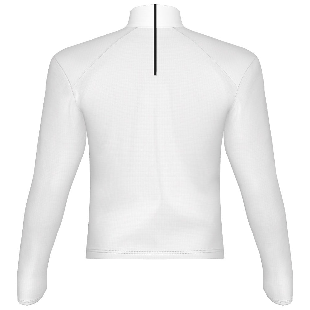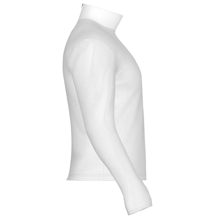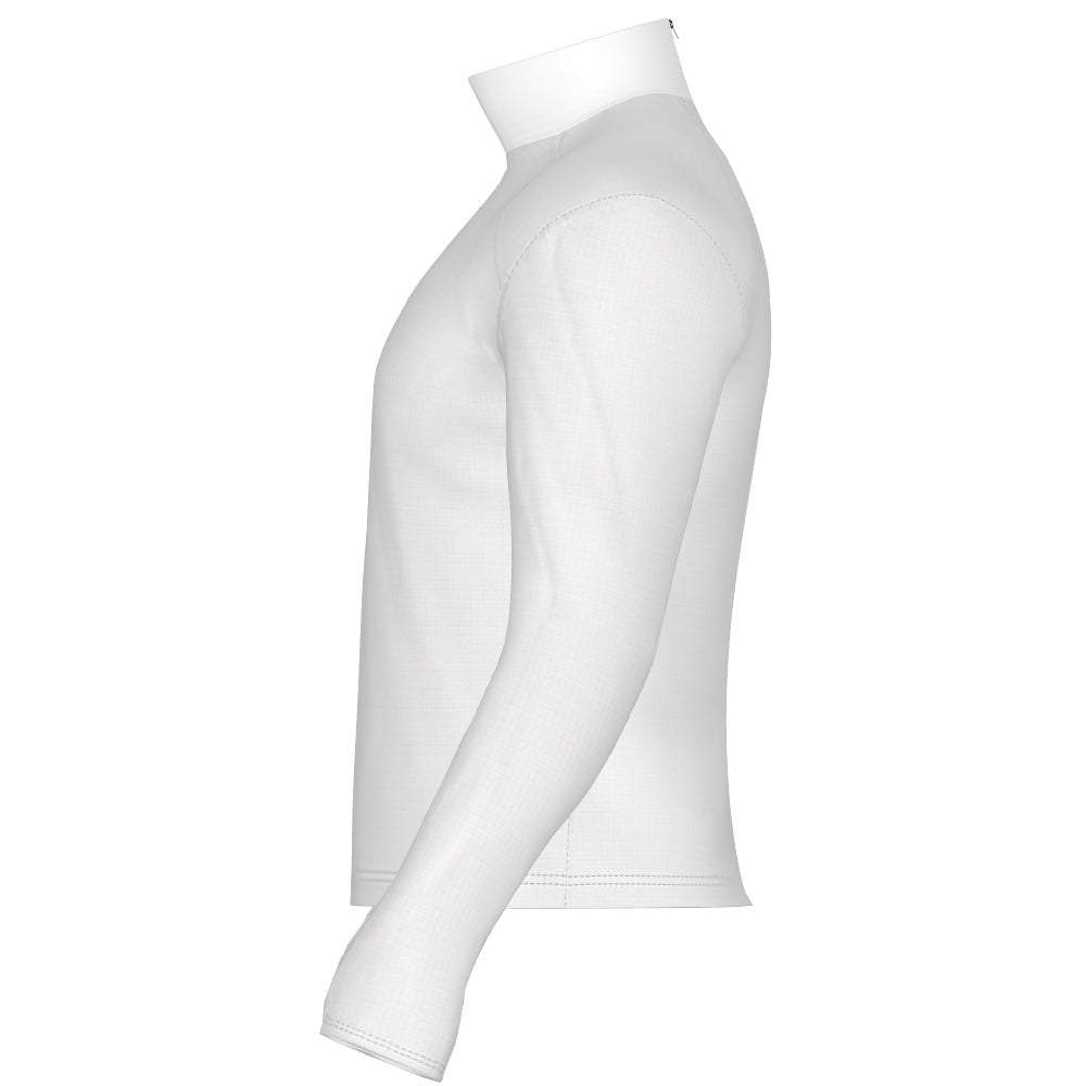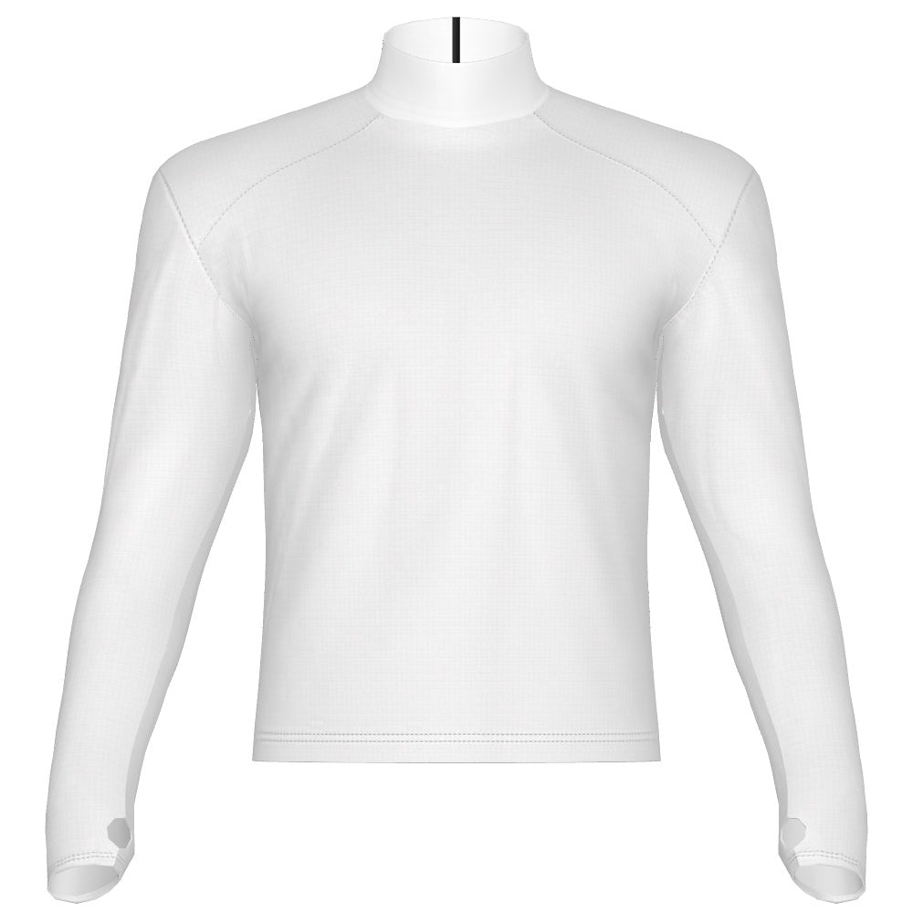 PERFORMANCE PREMIER BAND TOP WITH BUILT IN SHOULDER PADS Heavyweight Digital Band Top Stretchable heavy weight poly spandex.  Features 8" back zipper at neck. Thumb Holes available for an additional cost.  Thumb Holes adds 2 weeks to the Production Time.